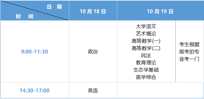 (二)专科起点升本科考试统考科目均为三门。其中两门公共课为政治、英语,一门专业基础课根据招生专业所隶属的学科门类确定(具体考试科目见附件2)。